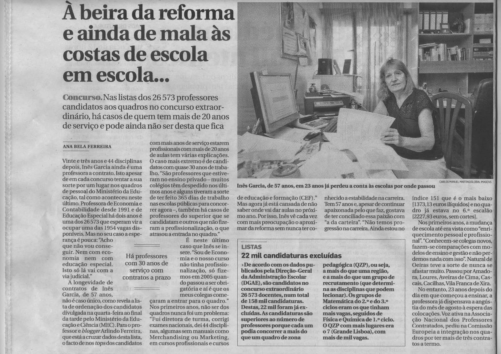 “À beira da reforma e ainda de mala às costas de escola em escola …” – notícia DN.